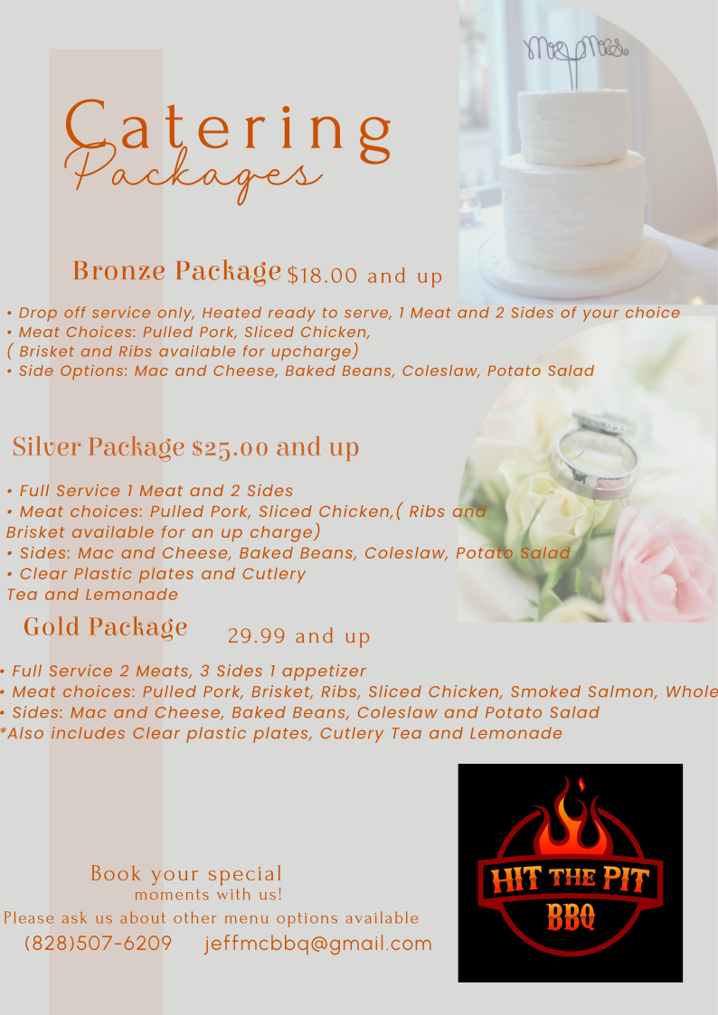 Hit The Pit BBQ Co is bringin' the heat to all of Western North Carolina with our mouthwatering catering services. Since 2016, we've been smokin' up a storm, perfecting our craft with 35 years of experience under our belts. Our food truck's been rollin' out award-winning barbeque that'll make your taste buds do a happy dance. From succulent ribs to whole hog barbeque, we've got the meats that can't be beat. And it ain't just about the pork – we're servin' up salmon and filet mignon that'll knock your socks off!